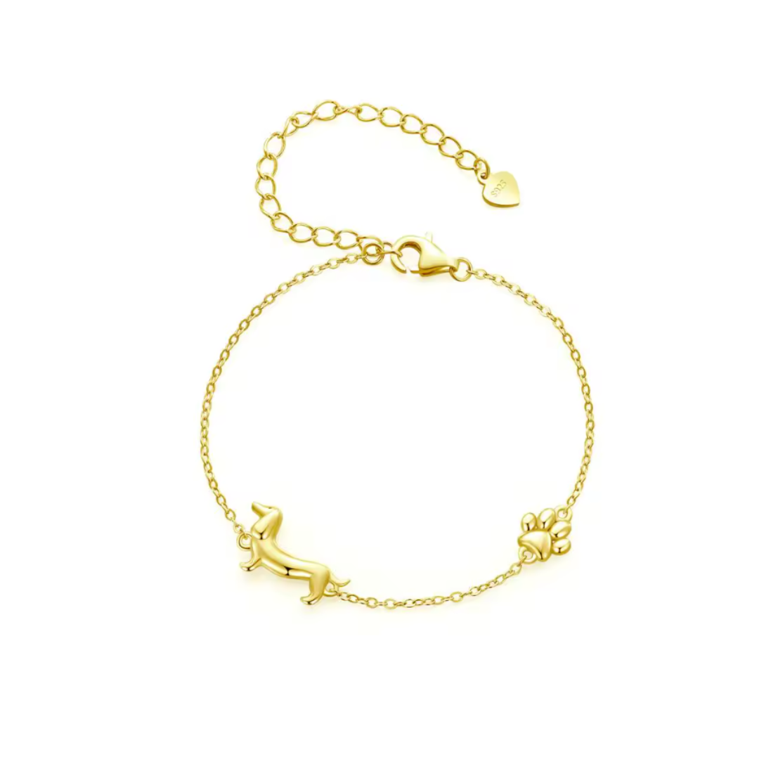 Sterling Silver Dachshund Bracelet- Gold Vermeil