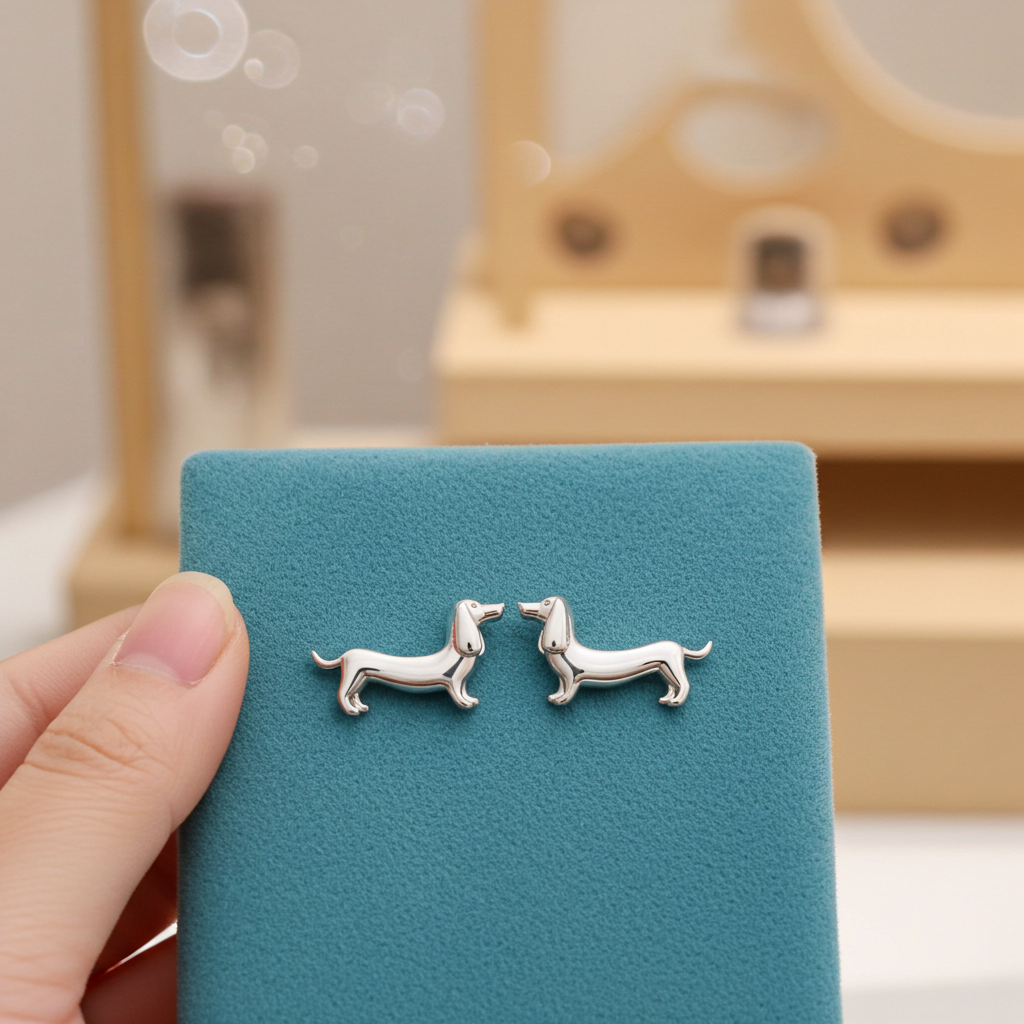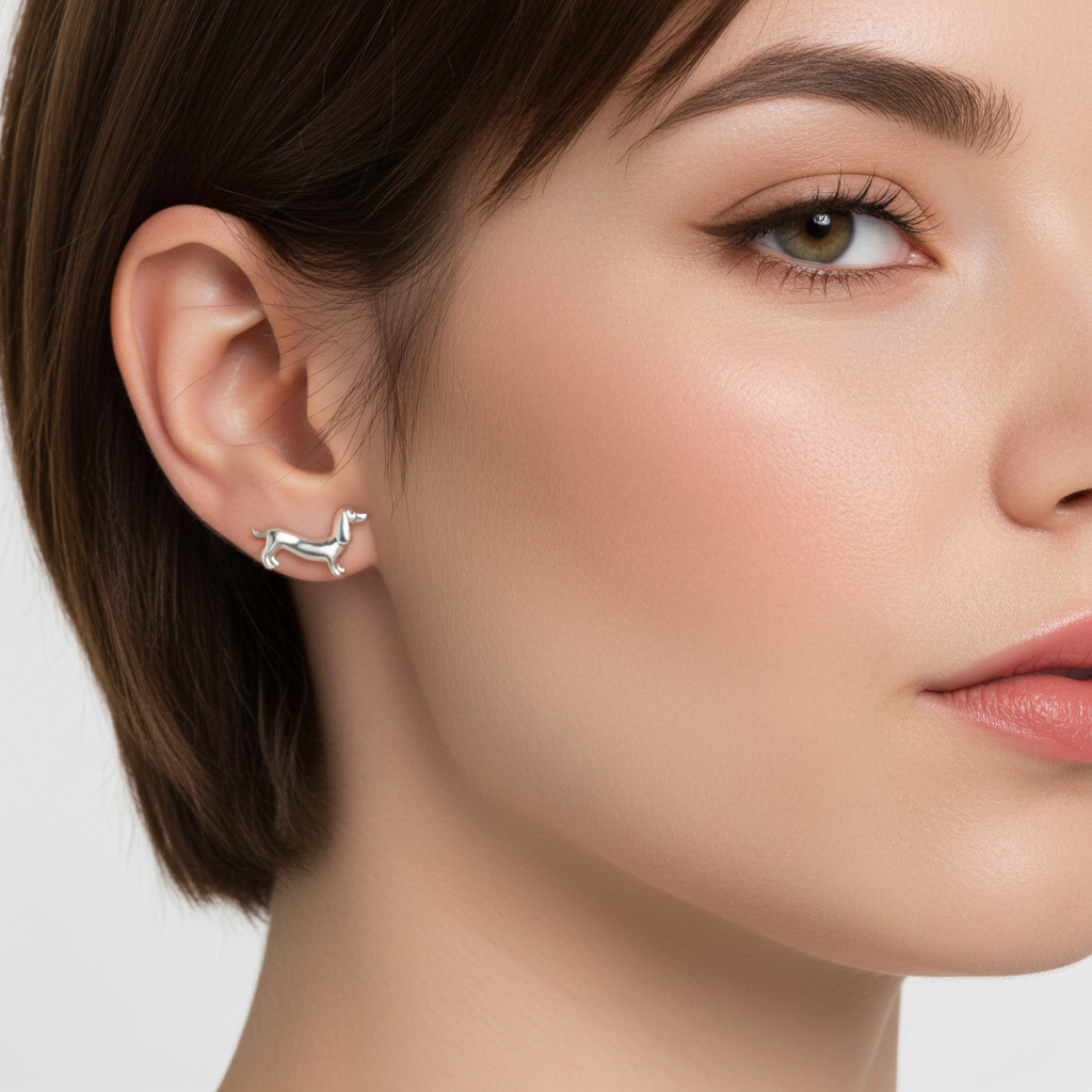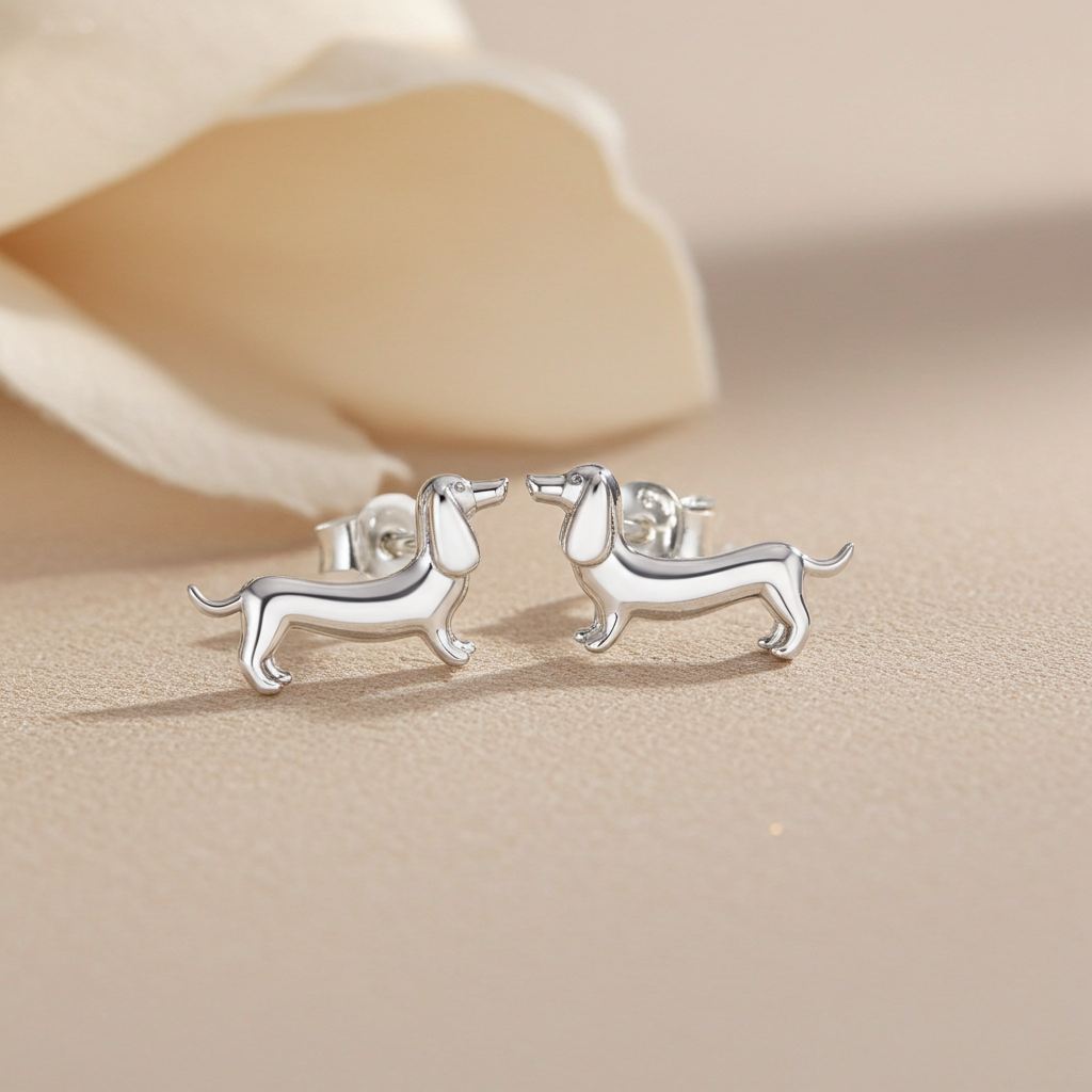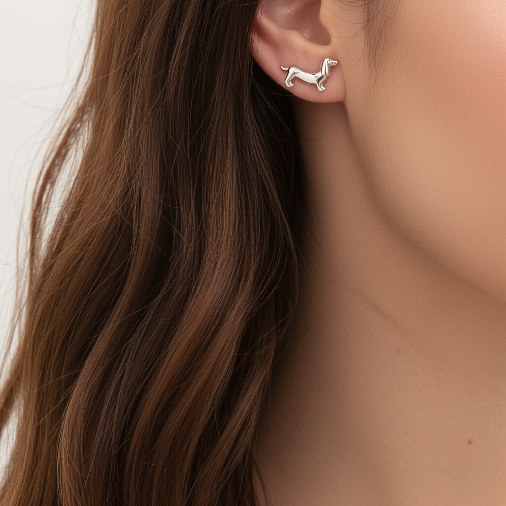 Sterling Silver Dachshund Stud Earring - Gold Vermeil