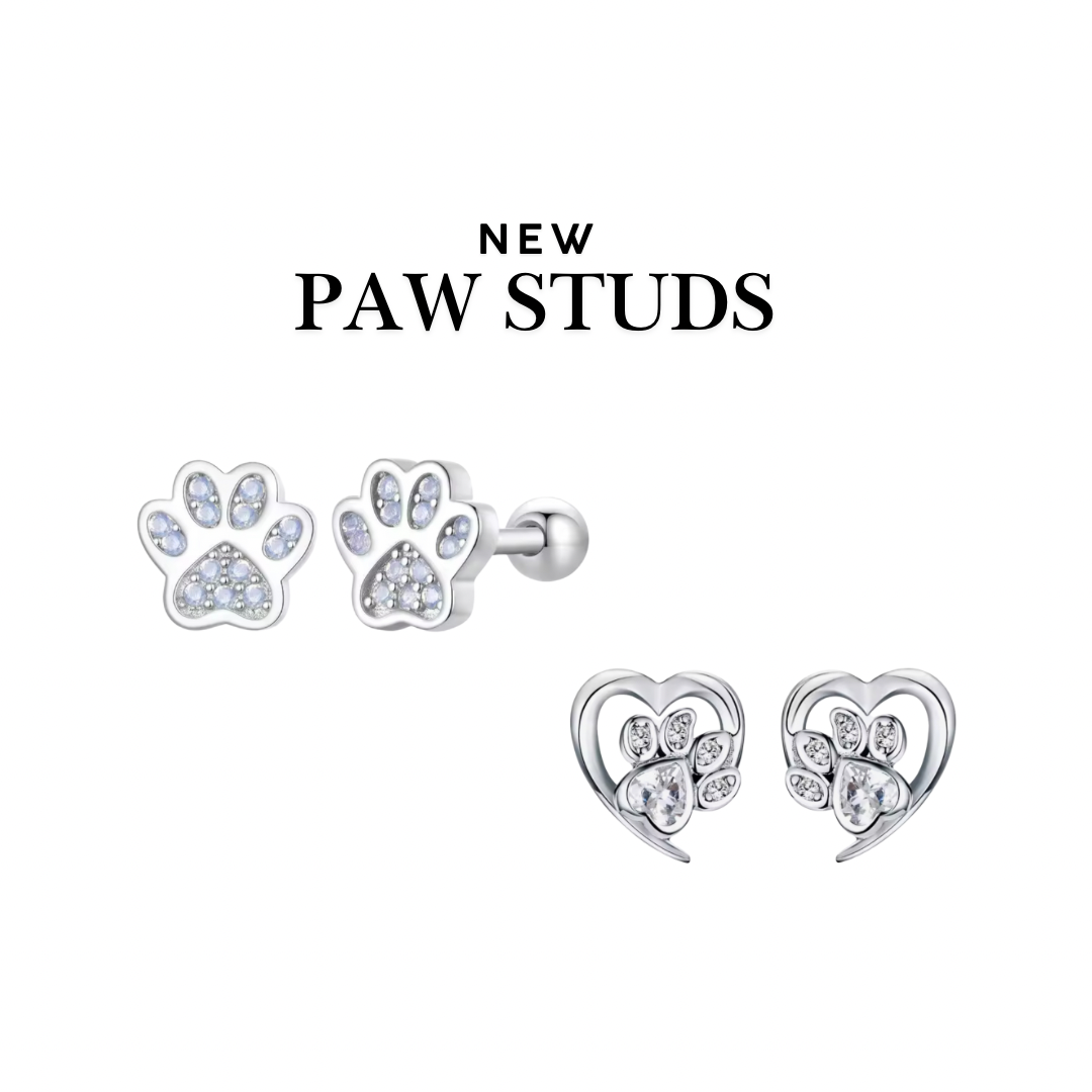 A brand-new addition! Choose from our sparkling Paw Print Studs or our Paw Print Heart Studs.
