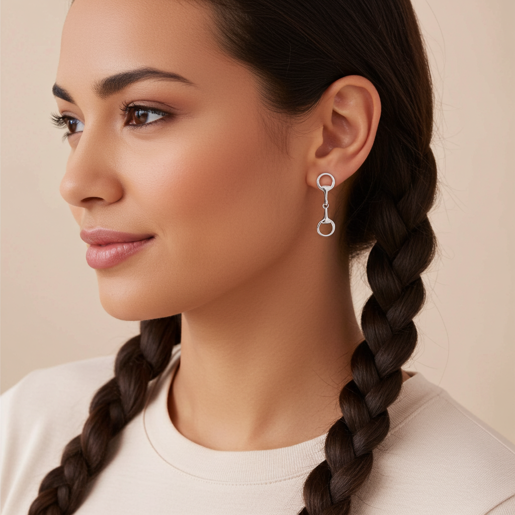 Classic Silver Snaffle Drop Earrings - Sleek Equestrian-Inspired Jewellery