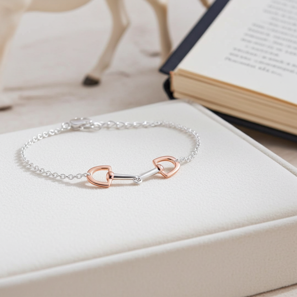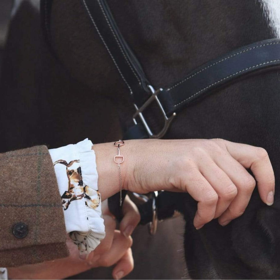 Crafted with meticulous attention to detail, this bracelet features a delicately designed snaffle in both Rose Gold and Sterling Silver, offering a perfect blend of sophistication and rustic charm.